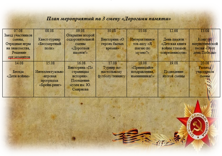 III смена 19.07-08.08